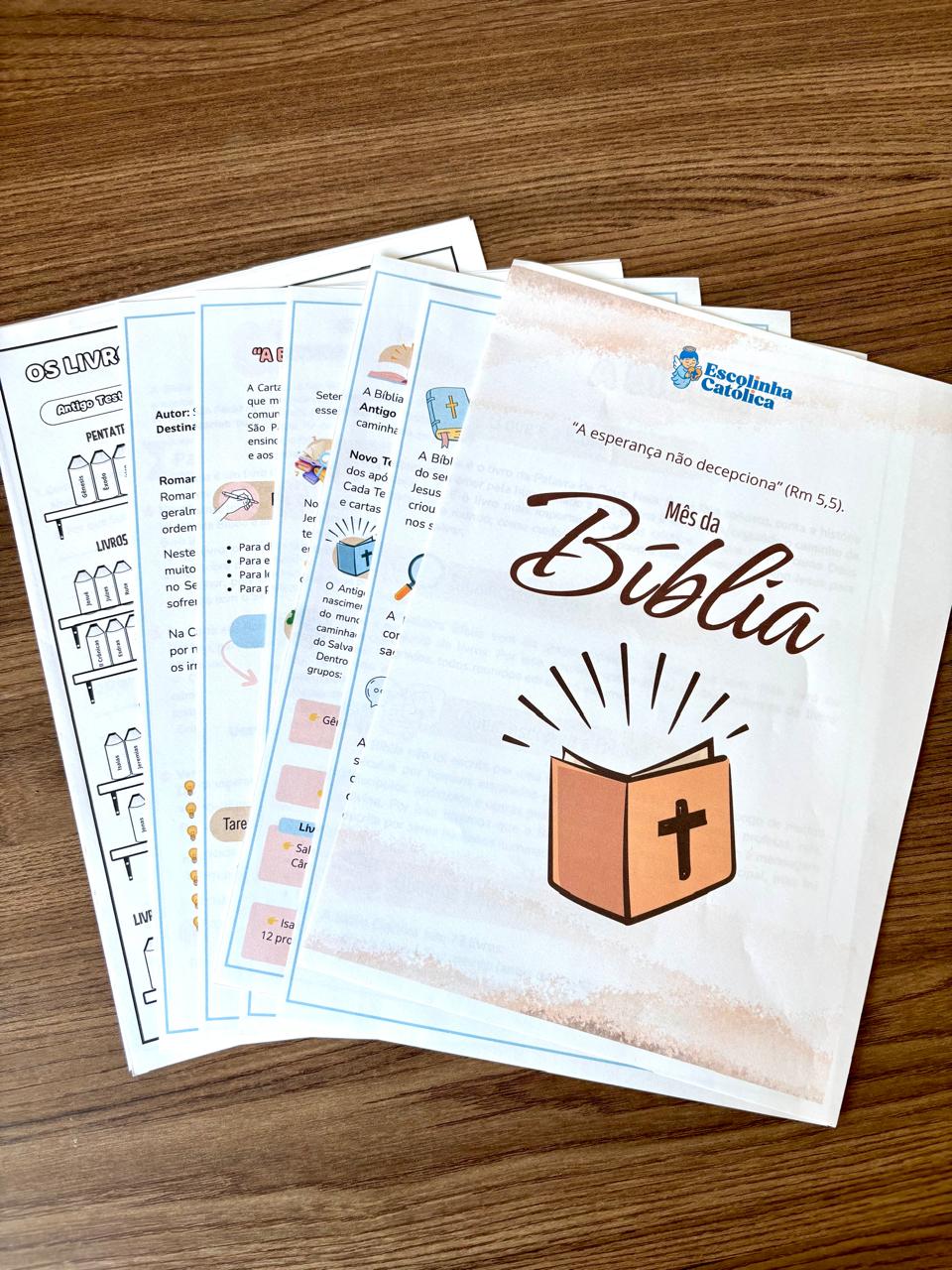 Descrição: Material mês da Bíbla, completo para crianças da Catequese. Nele vem explicações sobre a Bíblia, o que é, como é dividida, quem escreveu, quantos livros têm e etc. Além disso vem explicações sobre a carta aos romanos e o lema “a esperança não decepciona”. Além disso, também vem: